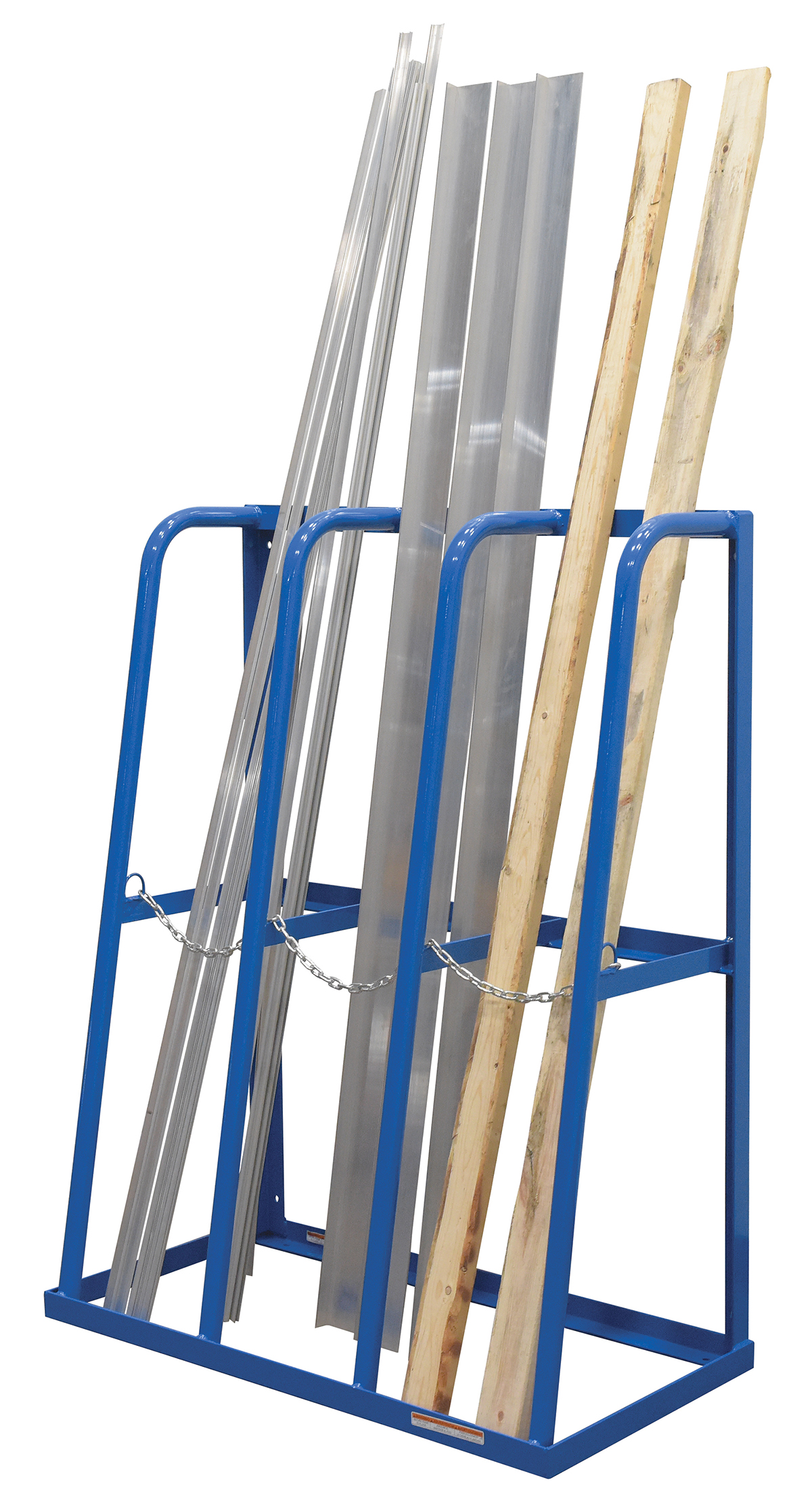 A vertical storage rack is perfect for distribution and manufacturing facilities. This unit is designed to organize and minimize floor space of long awkward pieces of material. For best use, it is recommended the unit be placed up against a wall for vertical or horizontal storage. Unit is powder-coated blue for baked in toughness and to minimize abrasions during use.