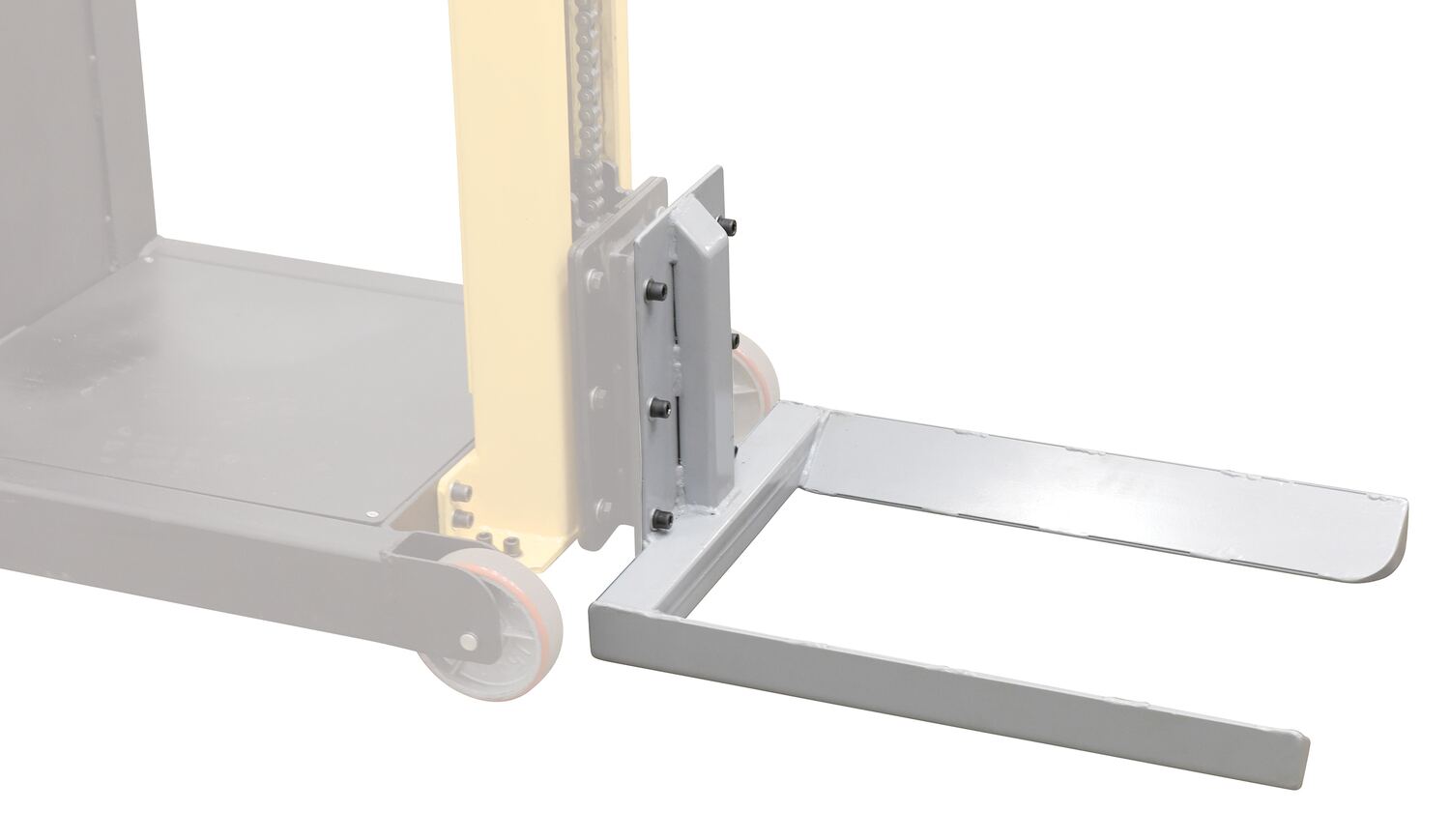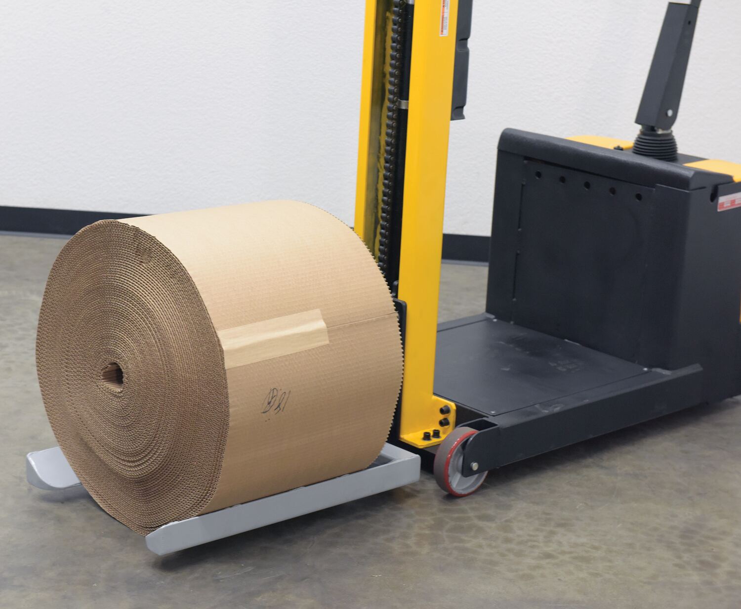 Steel Counter Balanced Power Lift Fixed Roll Fork, 20 " Fork Attachment 600 Lb. Capacity GrayLarge rolls can be difficult to maneuver and lift, but with the roll lifter stacker attachment that chore just became a joy! The forks on this attachment are fixed, so there is no hassle of adjusting the fork span before or between loads. With a unique design, the roll sits in a cradle like support system which keeps the roll secure during transport.