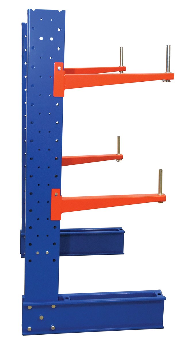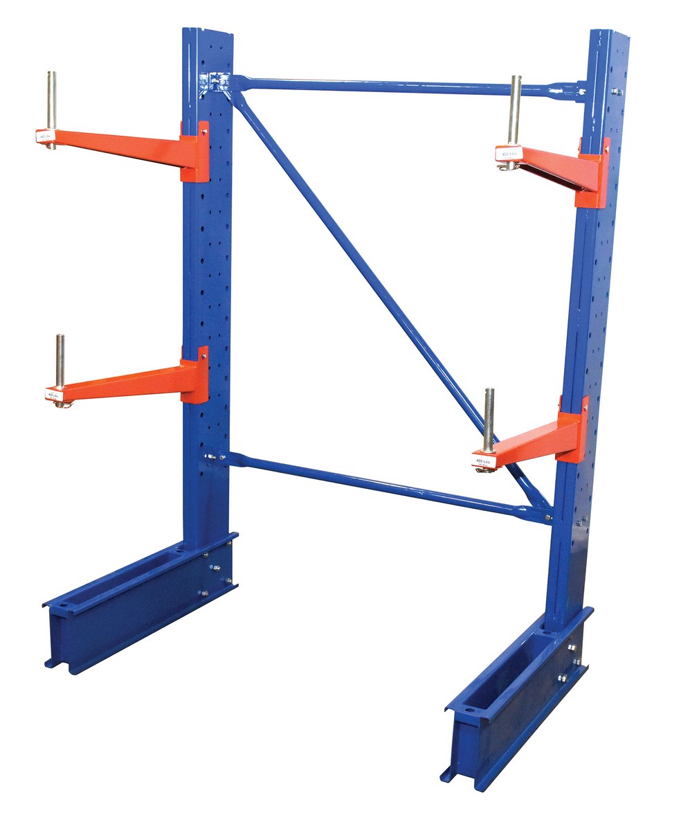 Steel Standard Duty Cantilever Single Sided Upright 6 Ft x 24 In. Arm Blue SetThe Cantilever racks are ideal for eliminating storage problems. The steel constructed design allows for quick and efficient handling by forklift or by hand. The rack includes pre-drilled holes, adjustable arms for access to variable heights, and front lipped arms to prevent items from falling. Available in both single sided and double sided units with the option of standard, medium, or heavy duty construction. *Capacity is per level.