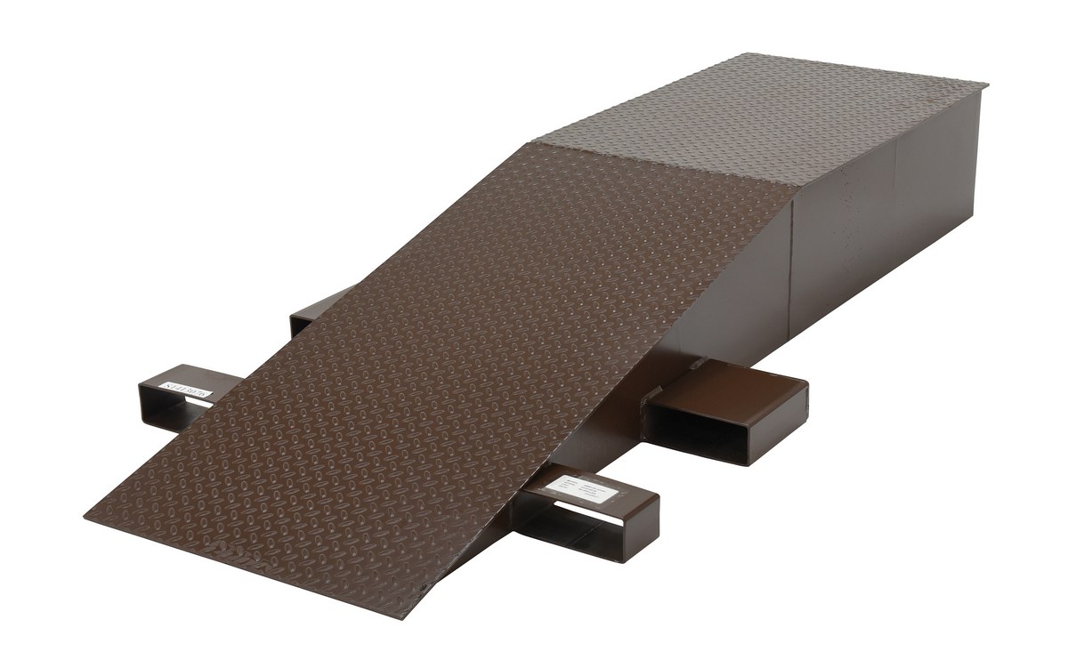 Steel Wheel Riser 84 In. x 24 In. x 12-1/4 In. 40,000 Lb. Capacity BrownWheel risers are designed to raise trailers to an appropriate crossover height for loaded fork trucks. Made of heavy-duty welded steel construction, these wheel risers are built to last! Each riser is equipped with fork pockets for easy transportation wherever a fork truck is available. Ramps may be stacked for convenient storage when not in use. Wheel risers are sold and priced as individual units.