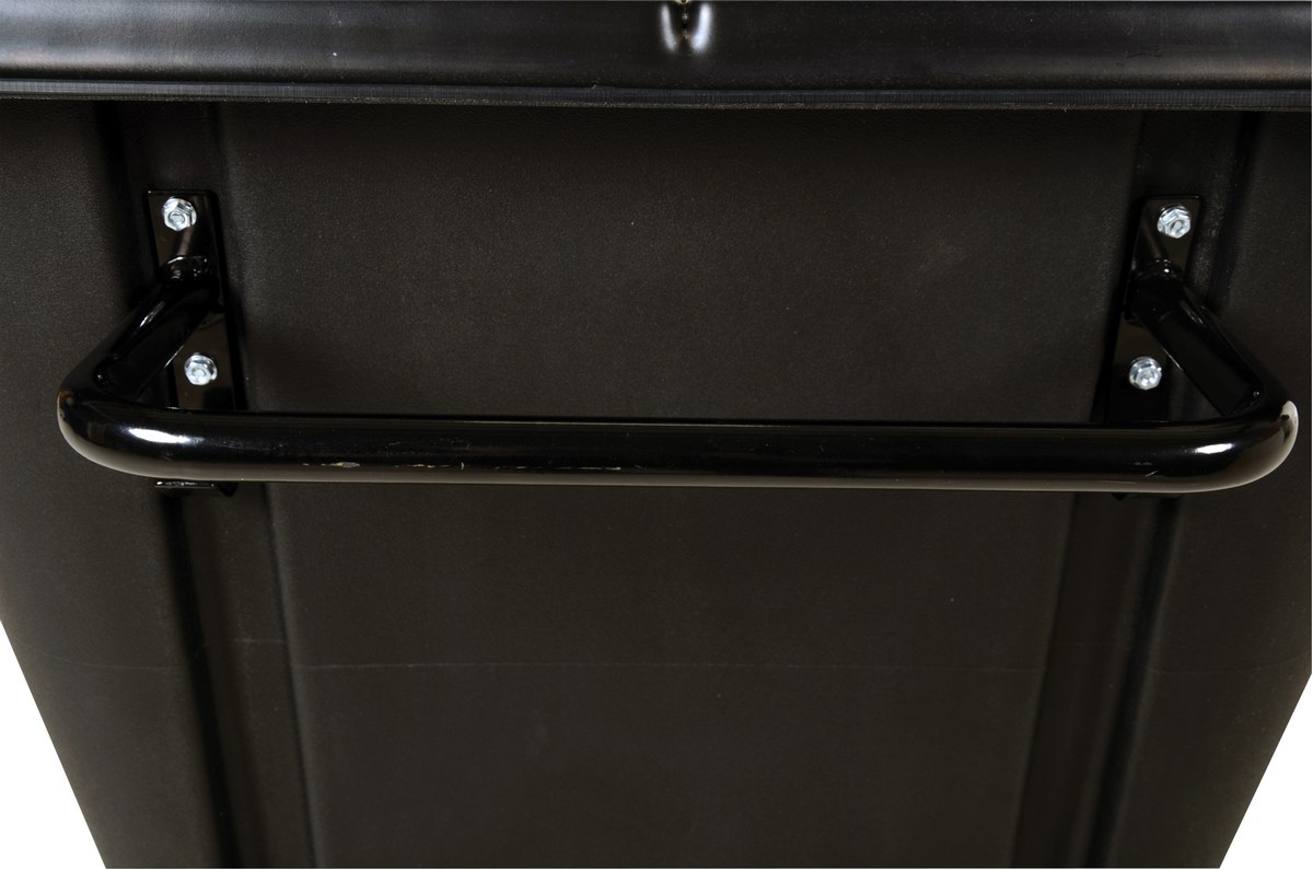 Durable plastic construction allows for collecting waste from multiple bins at a collective time. Great for warehouses, fairs, ball parks, schools, etc. Strong, one-piece molded polyethylene body with steel base tip support and a balanced design to allow for simple dumping by one person. Easily portable on 2 large rubber wheels and two swivel wheels. Not for use with fork trucks. Black color design.