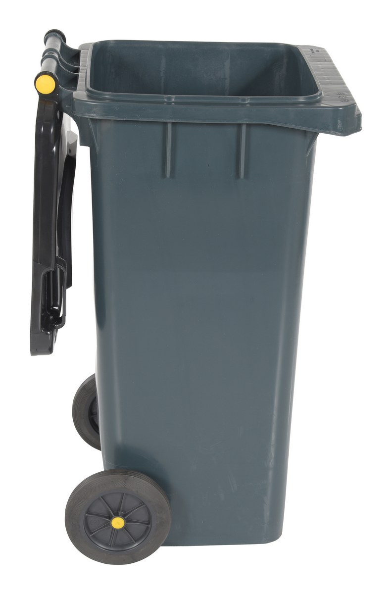 High Density Polyethylene 32 Gallon Trash Can GrayThe trash can is constructed of durable polyethylene that withstands subzero cold and extreme summer heat. Great for high traffic areas such as: warehouses, fairs, ball parks, schools, etc. Each container includes two (2) wheels for easy portability and hinged lips to keep the rain out. Keep your waste out of eyesight in our heavy-duty and easy to move refuse containers.