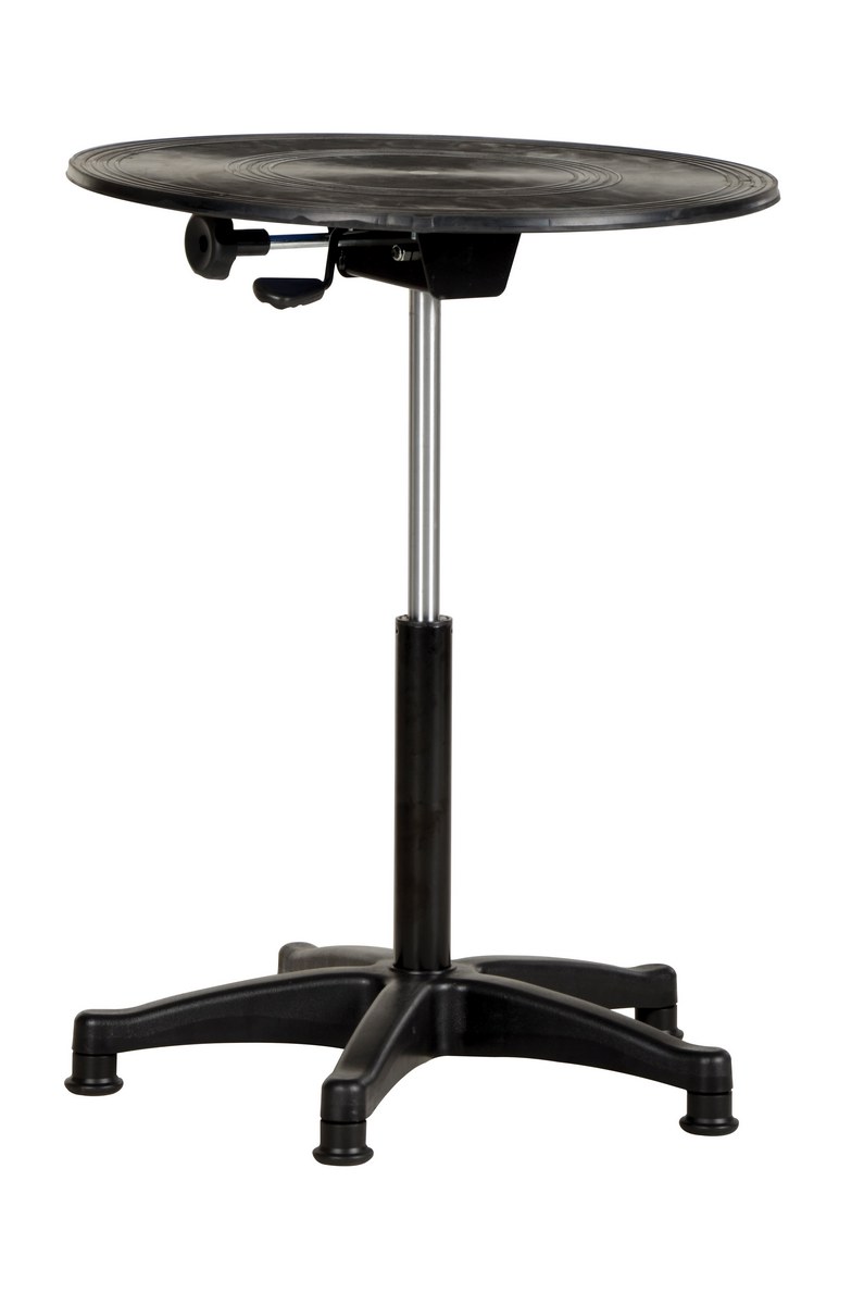 Steel Turntable 24 In. Diameter Gas Cylinder 21-31 In. Height Adjustment 300 Lb. Capacity BlackThe heavy-duty manual turntable maximizes workspace and allows workers to rotate an item from a single position. Bench top turntables allow workers to stay in one position and rotate items for access from all sides. No need to walk around the table to access areas out of view. Easy and smooth bearing motion. Used in hundreds of applications; displays, paint spraying, assembly units, repairs, etc. The rugged steel construction has an easy, smooth rotation that won't jostle delicate parts. This turntable features a gas cylinder up and down mechanism (similar design as office chairs).