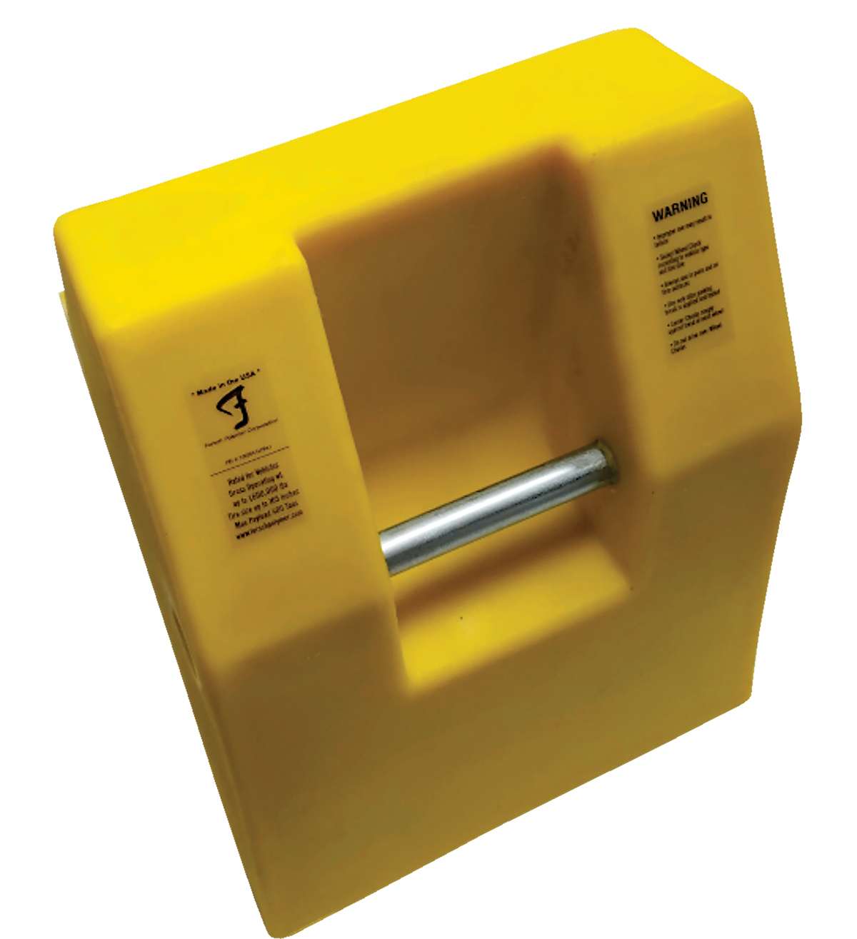 Polyurethane Wheel Chock 15 In. x 25 In. x 16 In. Tire Overall Depth 165 In. 400 Ton Capacity YellowWhen it comes to maintaining strength and stability look no further than the polyurethane wheel chock. With a wide foundational base the chock can keep loads of many sizes safe and secure from movement or jostling. A handle is included in the back for easy carrying and transference from place to place, while there are pre drilled mounting holes if the location is more permanent. The bright color encourages clear visibility and awareness.