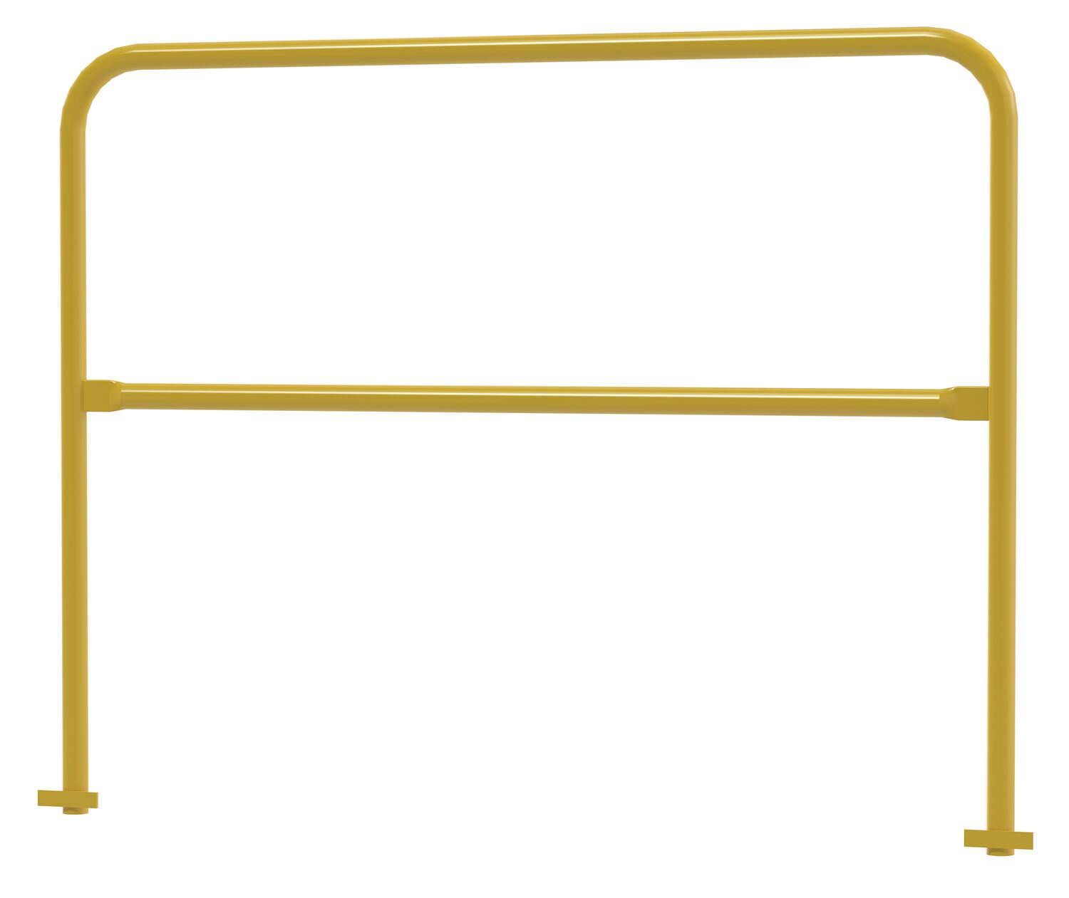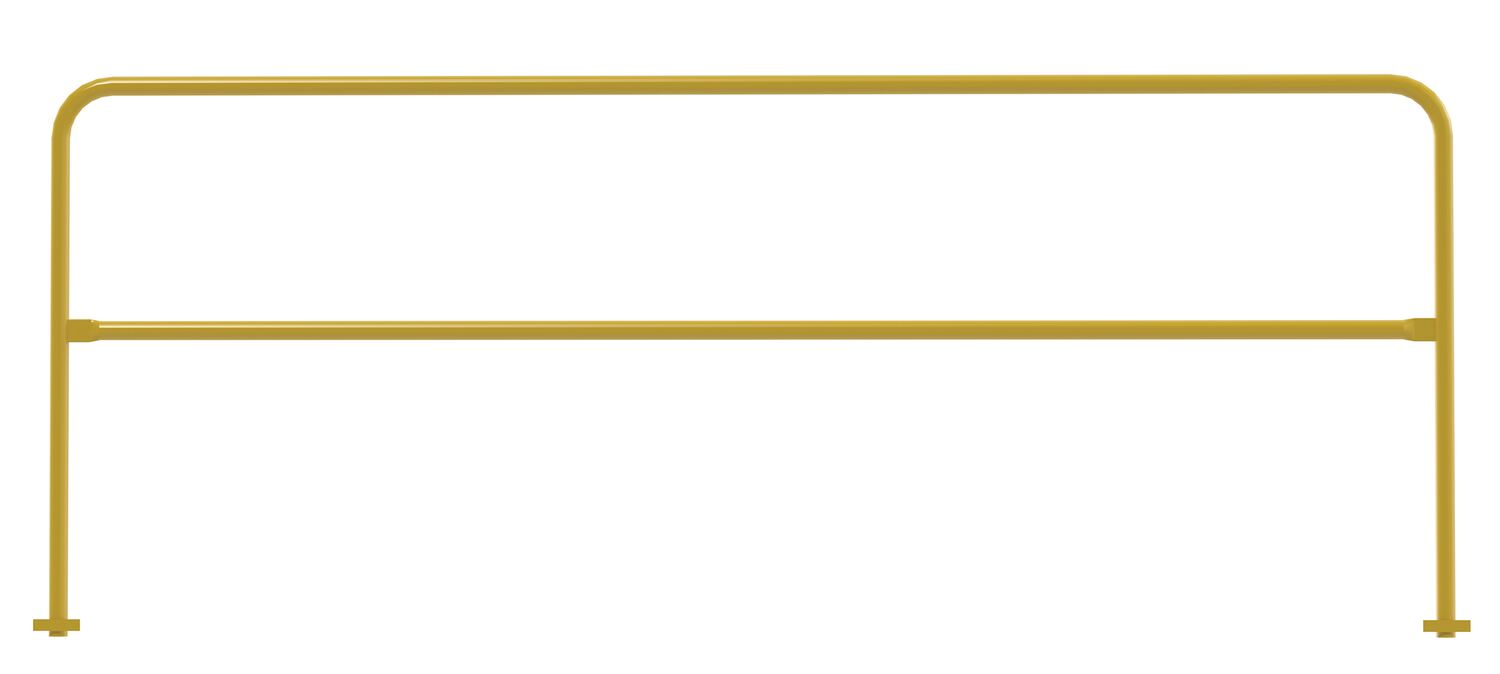 Steel Safety Railing Pour in Place 4 Ft. Length YellowElevated surfaces at any height can lead to a dangerous situation. Protect those areas, like walkways and mezzanine drop-off's with a steel handrail. This design is specifically engineered to be installed directly into the concrete, instead of attaching to the surface. 6” inches have been added to the leg length to accommodate for the direct ground installation. The VDKR series safety rail products comply with U.S. Occupational Safety and Health Administration (OSHA) General industry requirements for guardrail systems in 29 CFR 1910.29.