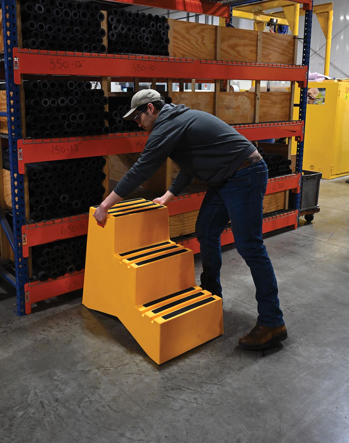 Polyethylene 3-Step Step Stool 500 Lb. Capacity YellowWhen items are out of reach, do not strain, simply step up with this Polyethylene step stool. The three (3) step unit has rear opening access storage compartments. This stool has rubber feet and a non-skid tape surface. Hand holes are standard for easy one person transportation.
