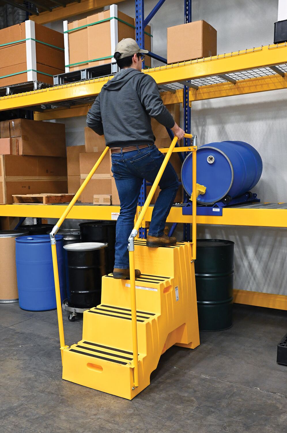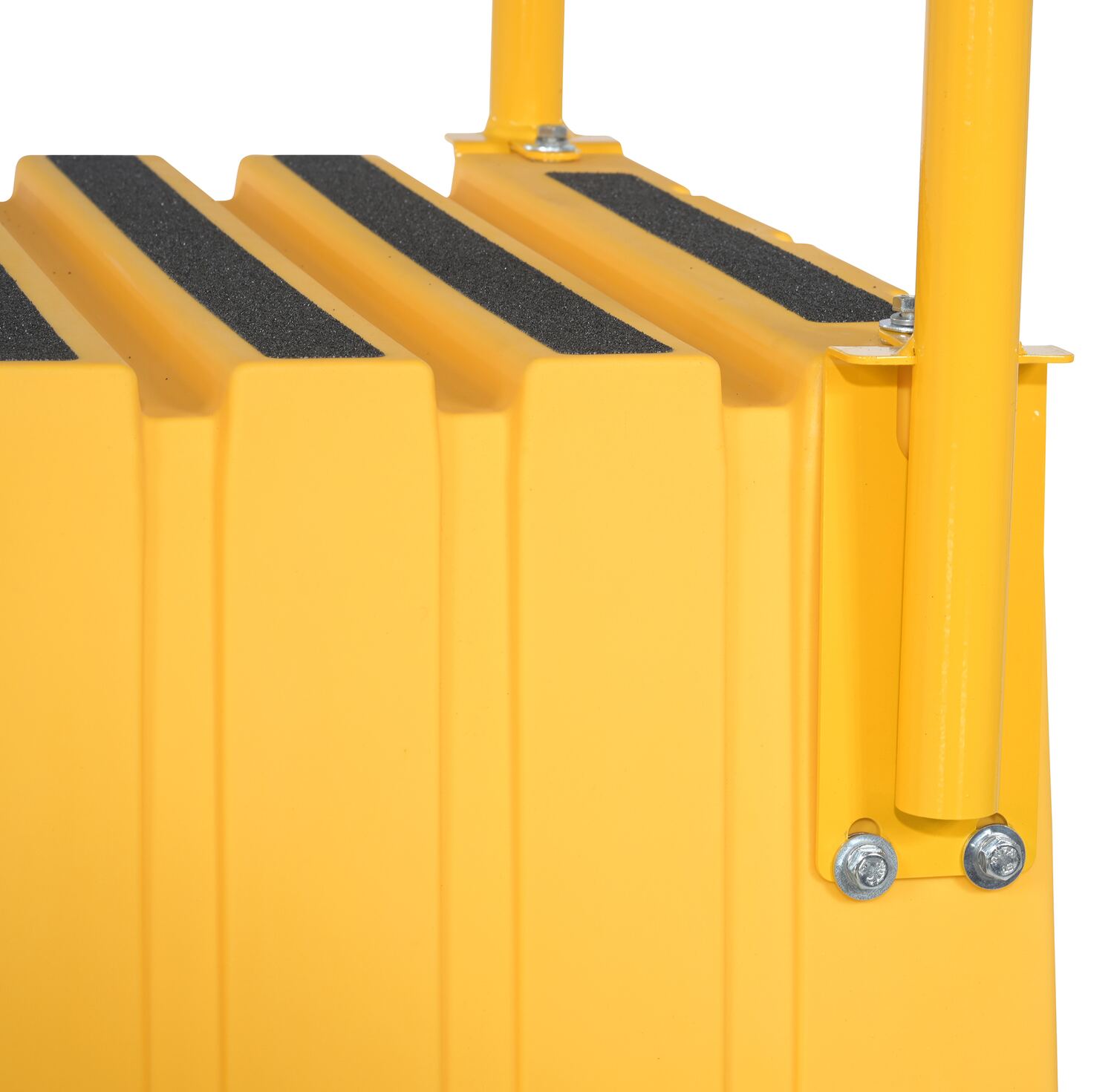 Polyethylene 4-Step Step Stool 500 Lb. Capacity YellowWhen items are out of reach, do not strain, simply step up with this Polyethylene step stool. The four (4) step unit has rear opening access storage compartments. This stool has rubber feet and a non-skid tape surface. Hand holes are standard for easy one person transportation.