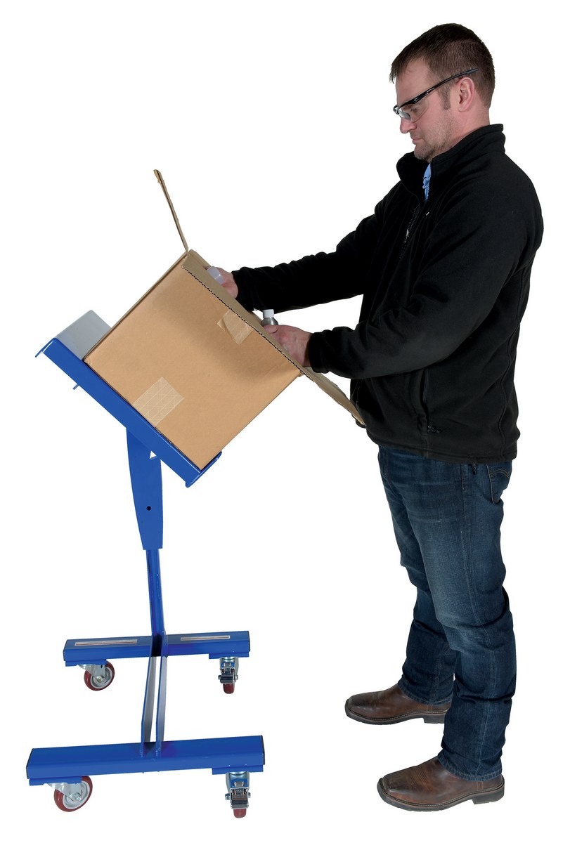 Steel Mobile Tilting Work Table 16 In. x 24 In. 200 Lb. Capacity BlueThe mobile tilting work table is designed to bring work to an ergonomically correct position. A raised edge provides stability when completing forms or compiling inventory data. Open design that is accessible form all sides.