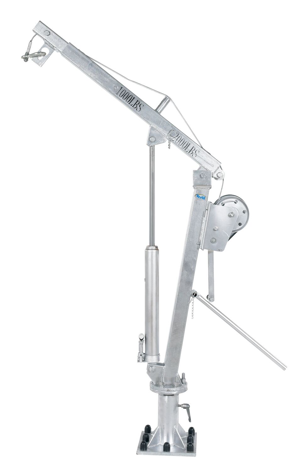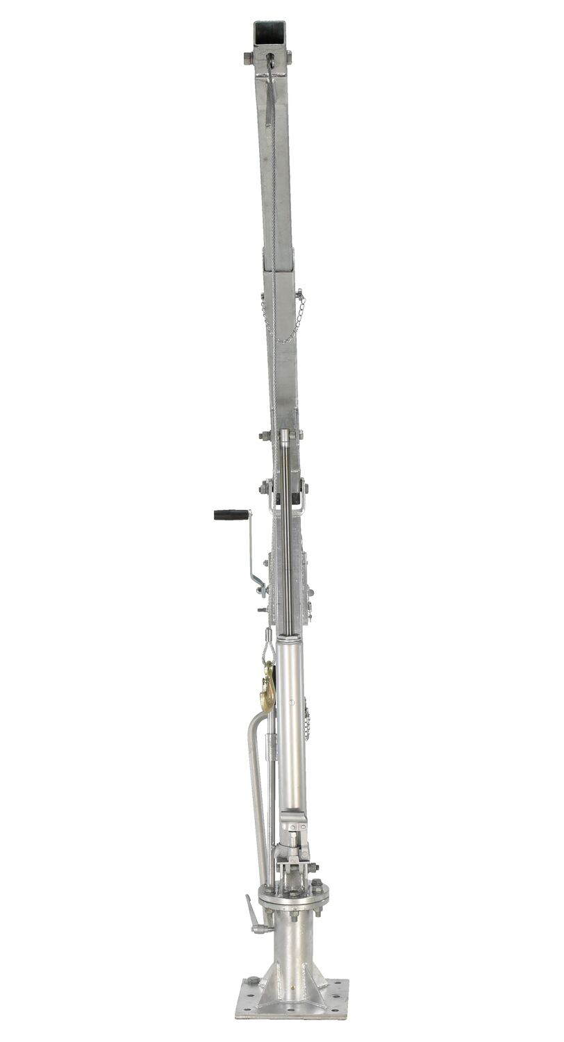 Galvanized Steel Winch Truck Jib Crane 52 In. Reach 1,000 Lb. Extended Capacity GrayThis Galvanized winch operated truck Jib crane lifts items from ground to truck bed height, then rotate into cargo area. Includes telescopic boom design with manual hydraulic hand pump to pivot boom up and down. Manual cable winch to lift and lower loads. Unit comes with one grab hook, one chain slot lock, and one sling hook with latch. Unit is designed for vertical lifting only. Do not use unit for lifting personnel or overhead lifting.
